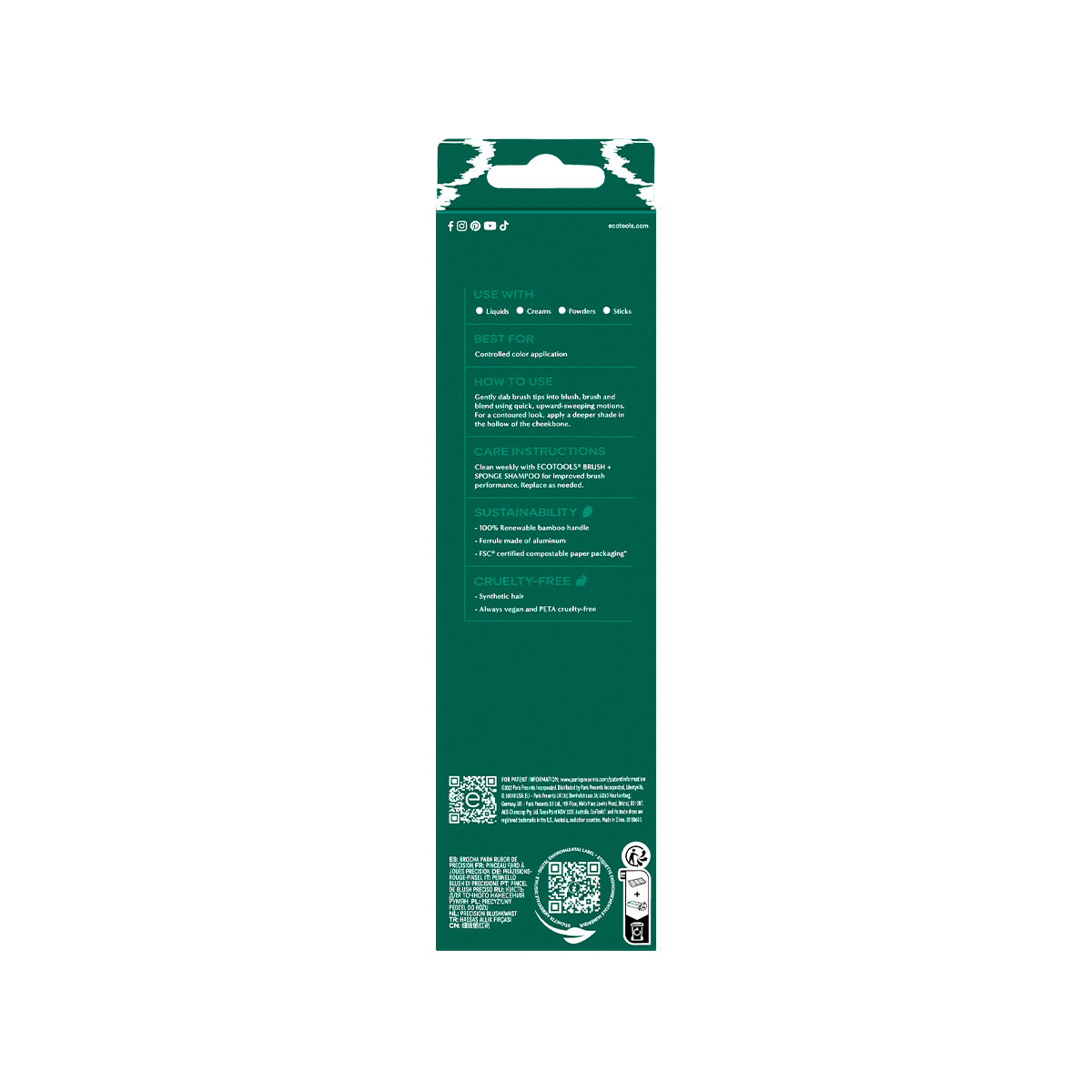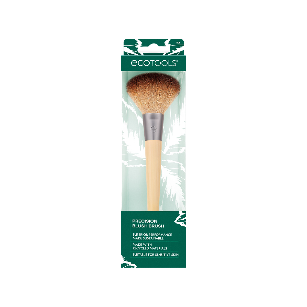 Кисть изготовлена из синтетического ворса – таклона, без использования материалов животного происхождения, основание выполнено из переработанного алюминия, а ручка сделана из натурального бамбука.