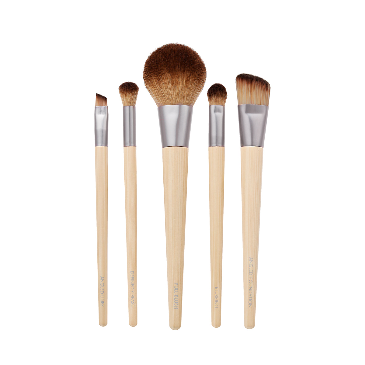 Кисти изготовлены из синтетического ворса — таклона, основания выполнены из переработанного алюминия, а ручки — из натурального бамбука.