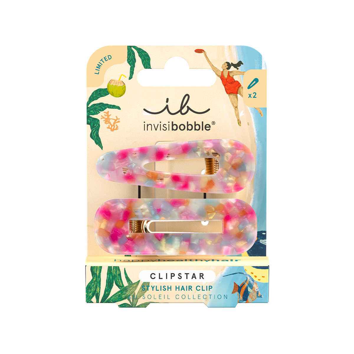 invisibobble CLIPSTAR Au Soleil Dazzling Wave – две элегантные заколочки для волос в трендовом дизайне с переливами розового и голубого оттенков с перламутровым эффектом. CLIPSTAR надежно при этом бережно фиксирует небольшие пряди волос, мгновенно добавляя очарование любой прическе. Комбинируйте заколочки в образах, чтобы подчеркнуть свою индивидуальность. Для любых образов, для всех типов волос.