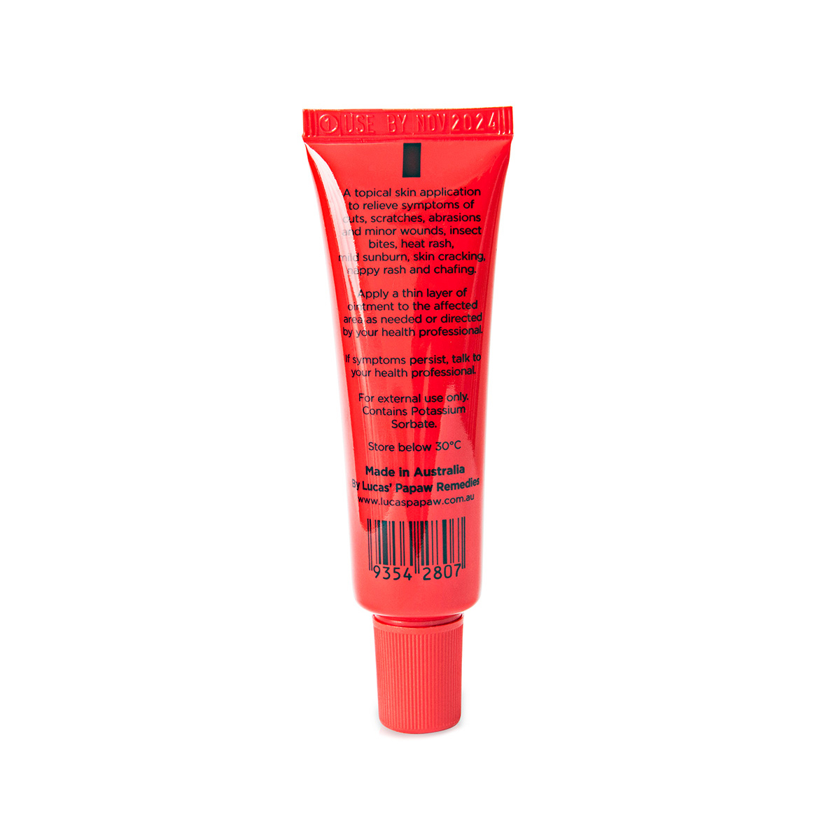 Lucas' Papaw – универсальный регенерирующий и антибактериальный бальзам. Родина бренда – Австралия, где этот бальзам есть в аптечке практически каждой семьи. В объеме 15 гр встроен специальный аппликатор, благодаря которому бальзам удобно наносить на губы. Бальзам также можно применять на лице, на коже тела, рук и ног. Lucas' Papaw – незаменимое средство для борьбы с обветренными губами, сухой кутикулой и шелушением на коже. Также может использоваться как база под макияж (выравнивает поверхность лица, убирает шелушения и разглаживает мелкие морщинки). Эффективно борется с воспалением кожи после депиляции, ожогами (в т.ч. солнечными), царапинами, ссадинами, порезами и небольшими открытыми ранами, опрелостями и натертостями, укусами насекомых, цыпками и заусенцами. Помогает снять боль при дерматитах и экземе, одновременно устраняя сухость кожи. Имеет пролонгированное действие (2–3 часа). Главные компоненты: натуральный папаин, который получают из свежих плодов папайи, известный своими восстанавливающими и заживляющими свойствами, и петролатум (вазелин), который обеспечивает максимально плотное прилегание средства к коже, обладает защитными функциями и является гипоаллергенным.