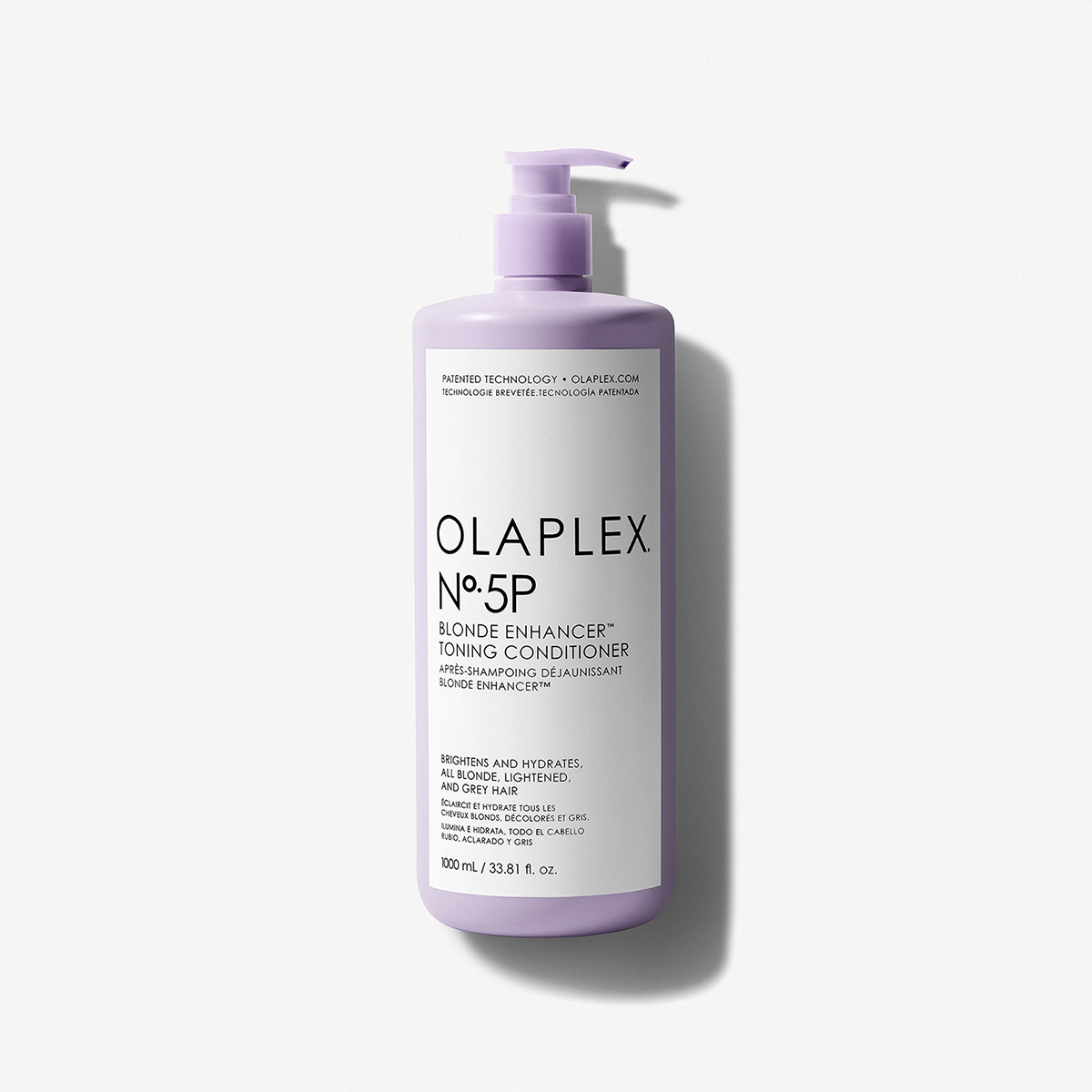 OLAPLEX No.5P Blonde Enhancer Toning Conditioner (1000 мл) — концентрированный фиолетовый кондиционер для сохранения сияющего чистого оттенка блонда, нейтрализации теплых подтонов, а также глубокого увлажнения и разглаживания волос. Средство питает и укрепляет пряди, увлажняет волосы и кожу головы без утяжеления. No.5P равномерно нейтрализует рыжие и желтые оттенки, делая светлые, седые или мелированные волосы более яркими, гладкими и здоровыми с каждым последующим применением. Масло ши восполняет необходимый уровень влаги, питает и распутывает волосы. Тонирующие фиолетовые агенты делают пряди яркими и помогают поддерживать баланс цвета, препятствуя появлению рыжины и желтизны. Эффективен для натуральных и окрашенных волос.