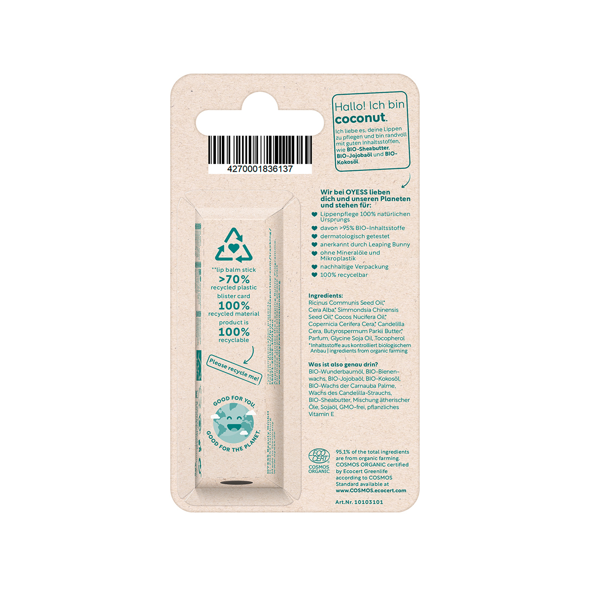 OYESS — молодой бренд из Германии, который производит экологичные высококачественные средства для ухода за кожей: бальзамы для губ, кремы для рук, патчи для глаз и лосьоны для тела. Все продукты протестированы дерматологами.