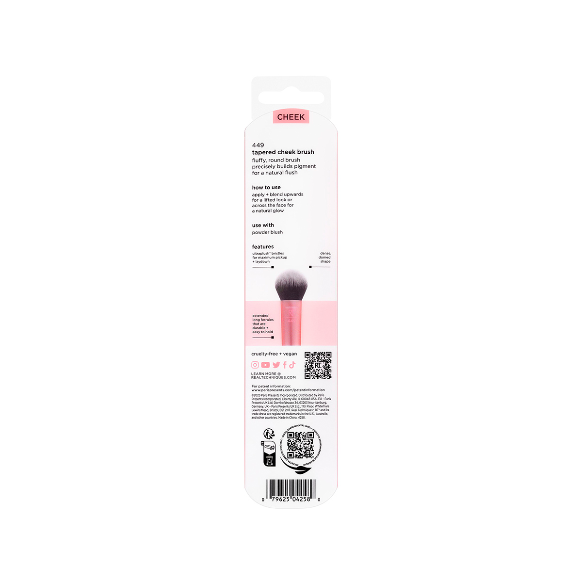 Нежный румянец, подчеркнутые рельефы лица и деликатное сияние? Легко! С помощью кисти для румян и контуринга 449 Real Techniques Tapered Cheek Brush вы сможете освежить образ всего за пару движений. Благодаря мягкому плотному ворсу она безупречно растушевывает скульптор, создавая иллюзию естественной тени, и расставляет мягкие сияющие и цветовые акценты хайлайтером и румянами. Tapered Cheek Brush подходит для сухих, жидких и кремовых текстур.