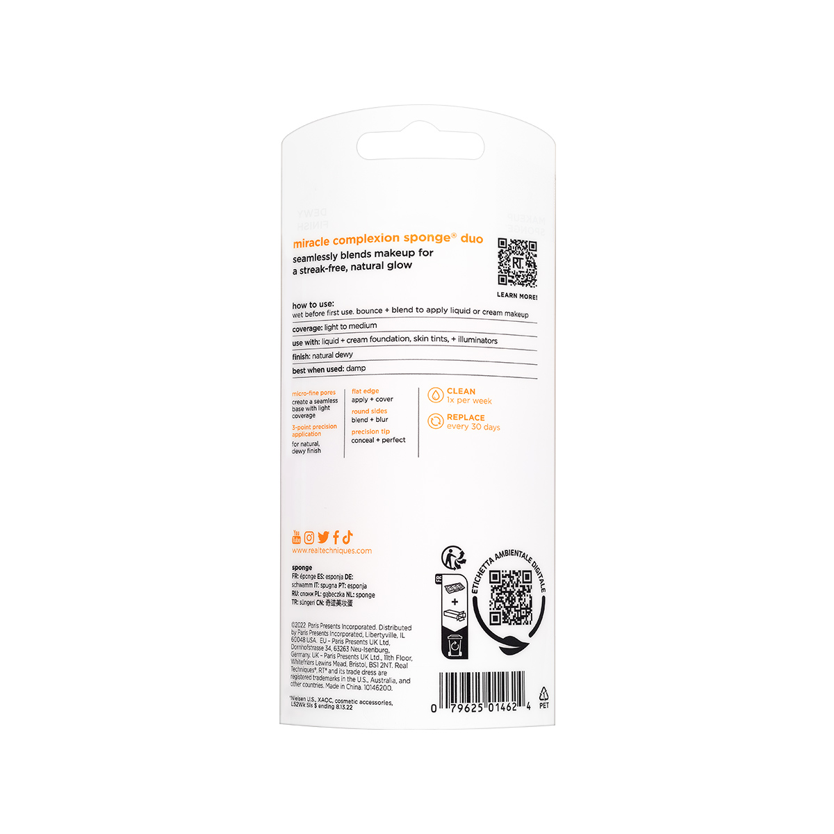 Один спонж – хорошо, а два – лучше! Дуэт легендарных спонжей Miracle Complexion – для тех, кто привык всегда иметь любимый инструмент под рукой. Miracle Complexion Sponge обеспечивает безупречное покрытие. Плоской скошенной стороной удобно прорабатывать зону вокруг глаз и носа. Узкий заостренный кончик подходит для коррекции мелких несовершенств и работы с труднодоступными участками.