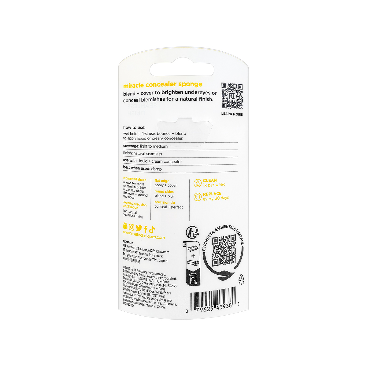 Скрыть несовершенства и создать естественный макияж с эффектом лифтинга? Этого легко достичь с помощью спонжа для консилера Real Techniques Miracle Concealer Sponge. Удлиненная форма спонжа обеспечивает удобное и точное нанесение консилера на любые зоны лица. Его плоский срез подходит для проработки зоны вокруг глаз и крыльев носа, закругленная сторона – для естественной растушевки, а заостренный кончик – для проработки мельчайших зон лица.