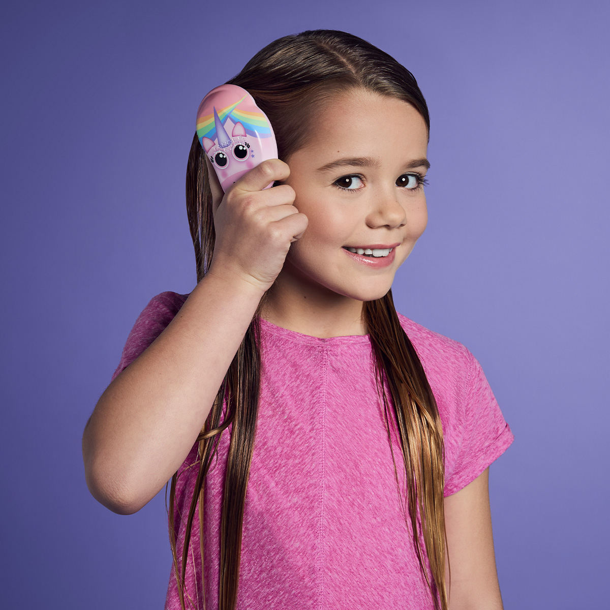 Новая упаковка: расческа The Original Mini Rainbow the Unicorn в обновленной картонной упаковке. Внутри – все та же расческа! Tangle Teezer The Original Mini Rainbow the Unicorn с принтом в виде сказочного единорога – незаменимая расческа для непослушных детских волос. Чуть меньше по размеру, чем классическая модель The Original, The Original Mini имеет такое же уникальное строение двухуровневых зубчиков, благодаря чему обеспечивает легкое, бережное и безболезненное распутывание детских волос.