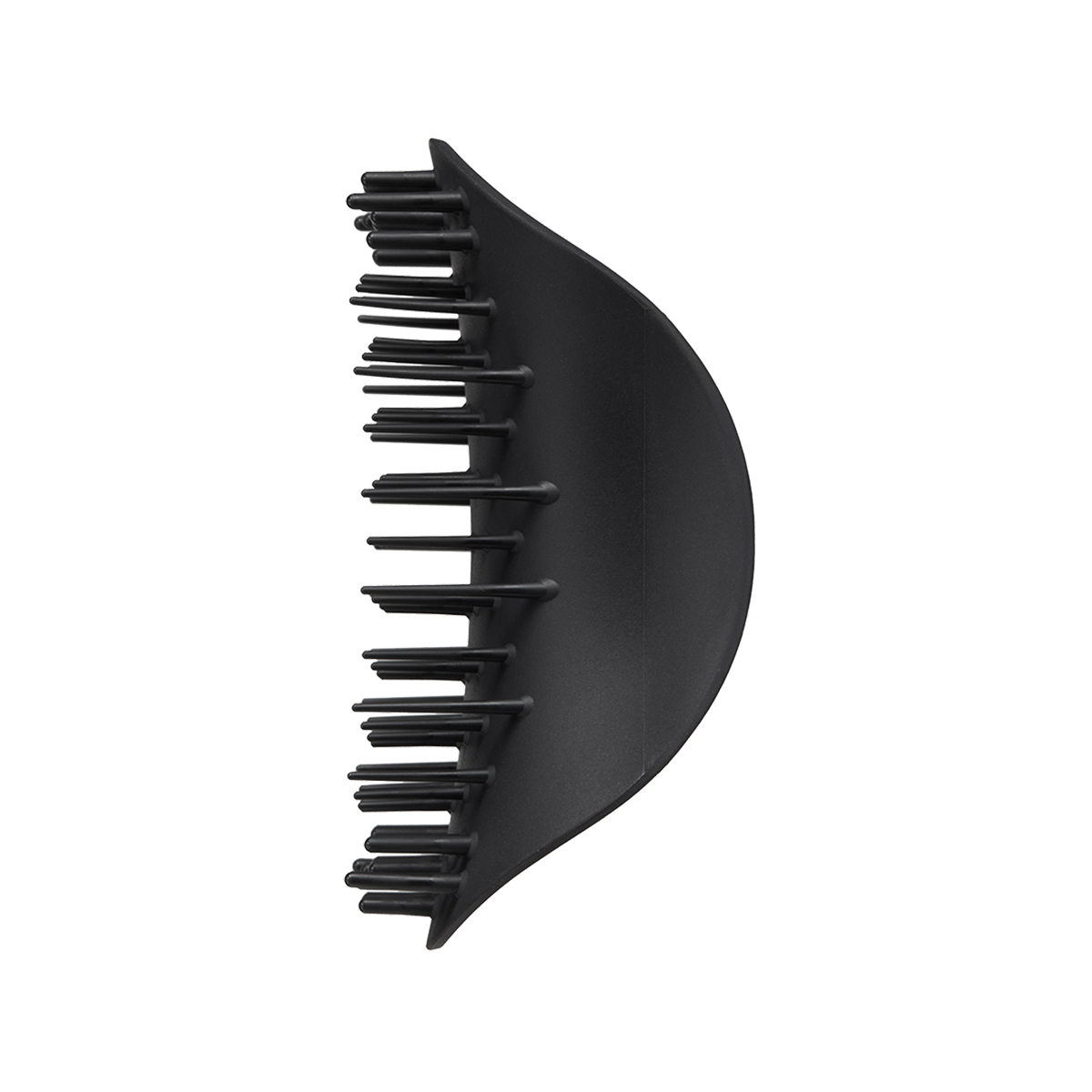 Tangle Teezer The Scalp Exfoliator and Massager Onyx Black – многофункциональная щетка для массажа головы. Представлена в черном оттенке. Благодаря зубчикам двух размеров щетка выполняет сразу две функции: очищение и массаж. Длинные гибкие зубчики помогают очистить кожу головы, удаляя ороговевшие частицы кожи и оказывая мягкое отшелушивающее действие. Для интенсивного очищения используйте в паре с шампунем. Короткие плотные зубчики приятно массируют кожу головы, что снимает общее напряжение, а также способствует улучшению кровообращения и росту волос. Размер, форма и расположение зубчиков подобраны таким образом, что пряди не путаются во время использования щетки. Благодаря эргономичной форме и матовому покрытию щетку удобно держать в руке, и она не выскальзывает при контакте с водой. Подходит для применения на влажных и сухих волосах. Не предназначена для расчесывания волос, а также для использования на воспаленной и чувствительной коже. Не используйте с феном.