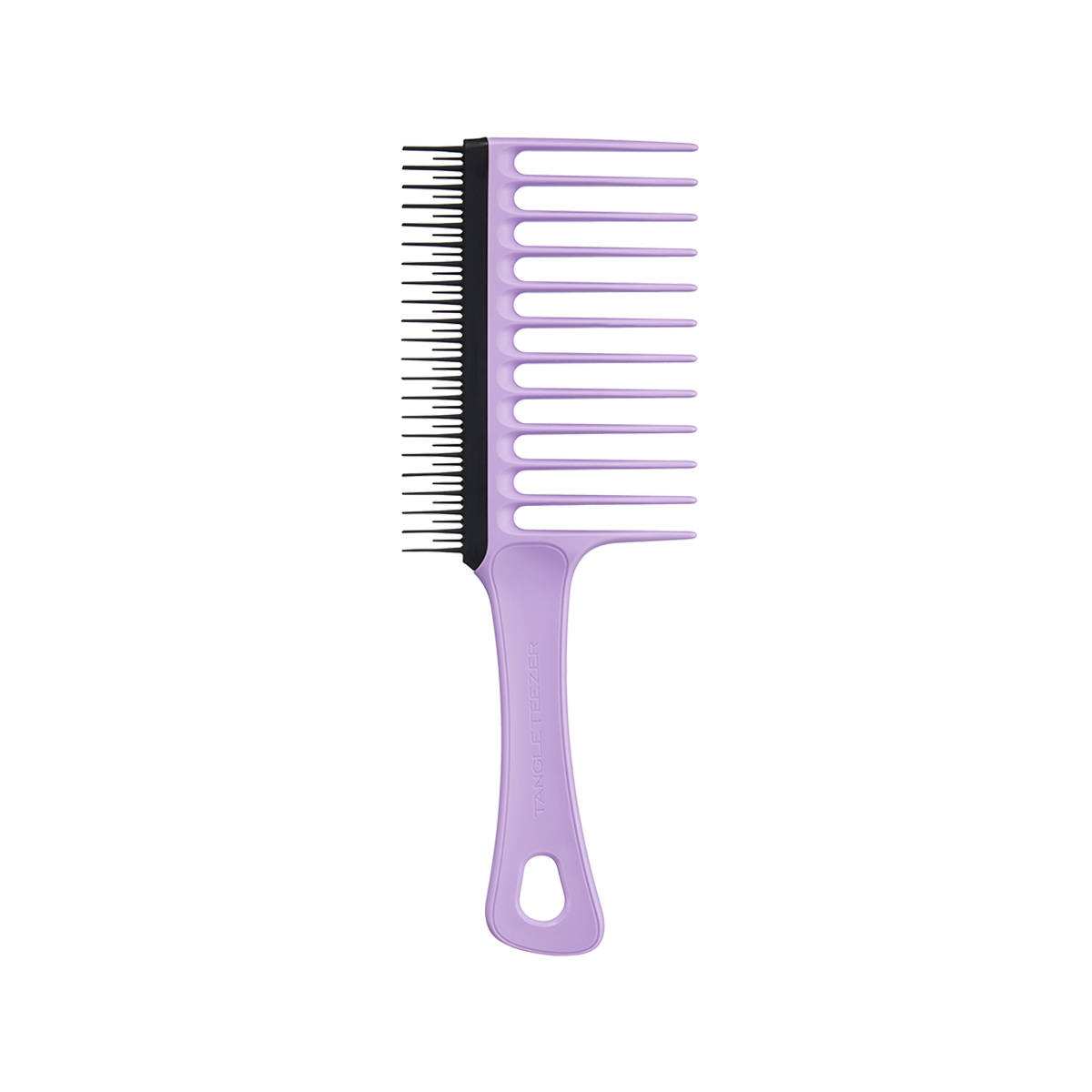 Tangle Teezer Wide Tooth Comb Purple Passion — двусторонняя расческа-гребень, разработанная для ежедневного ухода за кудрявыми волосами (в особенности для типов волос от 3С до 4С), а также для нанесения уходовых средств и разделения прядей. Подходит как для влажных, так и для сухих волос. Удобное сочетание сразу двух видов зубчиков позволяет легко и бережно распутать даже сильно вьющиеся волосы. Длинные зубчики с мягкими скругленными кончиками легко скользят по волосам, позволяя быстро расчесать волосы, а гибкие двухуровневые зубчики на другой стороне гребня помогают еще более тщательно распутать пряди, не повреждая их. Не используйте с феном.