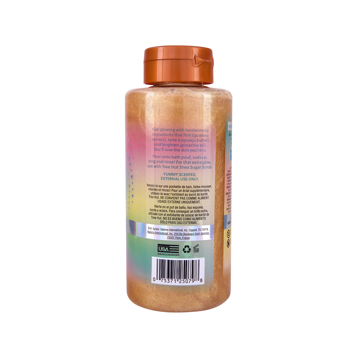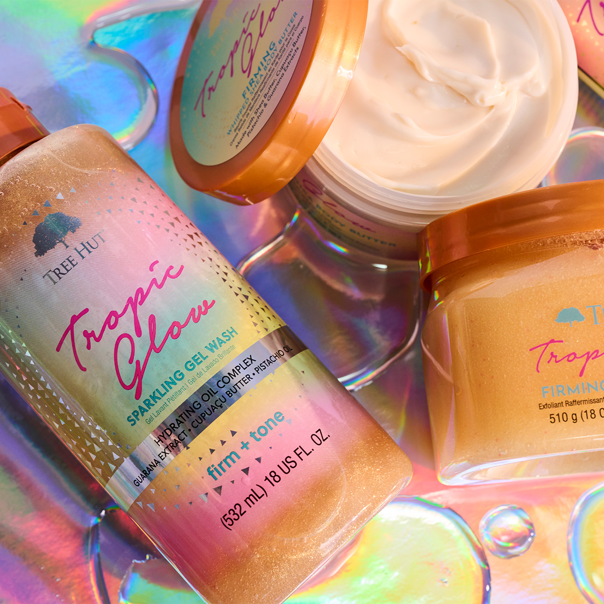 Перезагрузка для вас и вашей кожи с Tree Hut! Гель для душа с шиммером Tree Hut Foaming Gel Tropic Glow с ароматом миндаля и сандала бережно очищает кожу и ухаживает за ней, даря ей мягкость, гладкость и естественное сияние. В формуле геля — уникальный комплекс масел ши, купуасу, авокадо, киви и апельсина, обогащенный экстрактом гуавы. Благодаря тщательно подобранному сочетанию ингредиентов, гель увлажняет и питает кожу, защищая ее от обезвоживания и сухости. Воздушная пена геля с мерцающими частицами Tree Hut Tropic Glow с нотами миндаля, амбры и теплого сандалового дерева создает ощущение поцелованной солнцем кожи и мгновенно поднимает настроение.